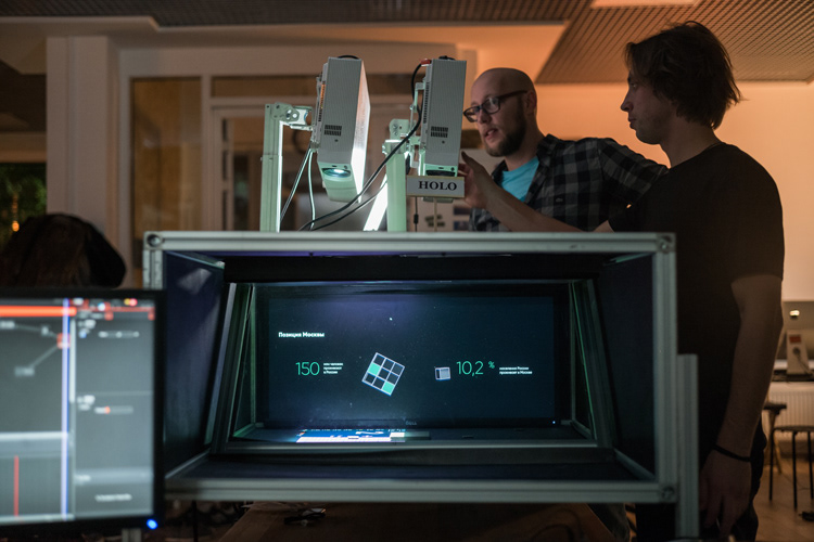 It is the Mount Everest of digital visualizations, a Star Trek-induced childhood dream, the ultimate challenge: the hologram. Although a true hologram has not yet been realized, there are many workarounds and approximations. One impressive holographic installation has just recently been put into reality for the Moscow City Government. Inty team was able to design visually stunning content that emanated true plasticity on three image layers – the PG hologram, backdrop LED screen and the floor projection mapping.