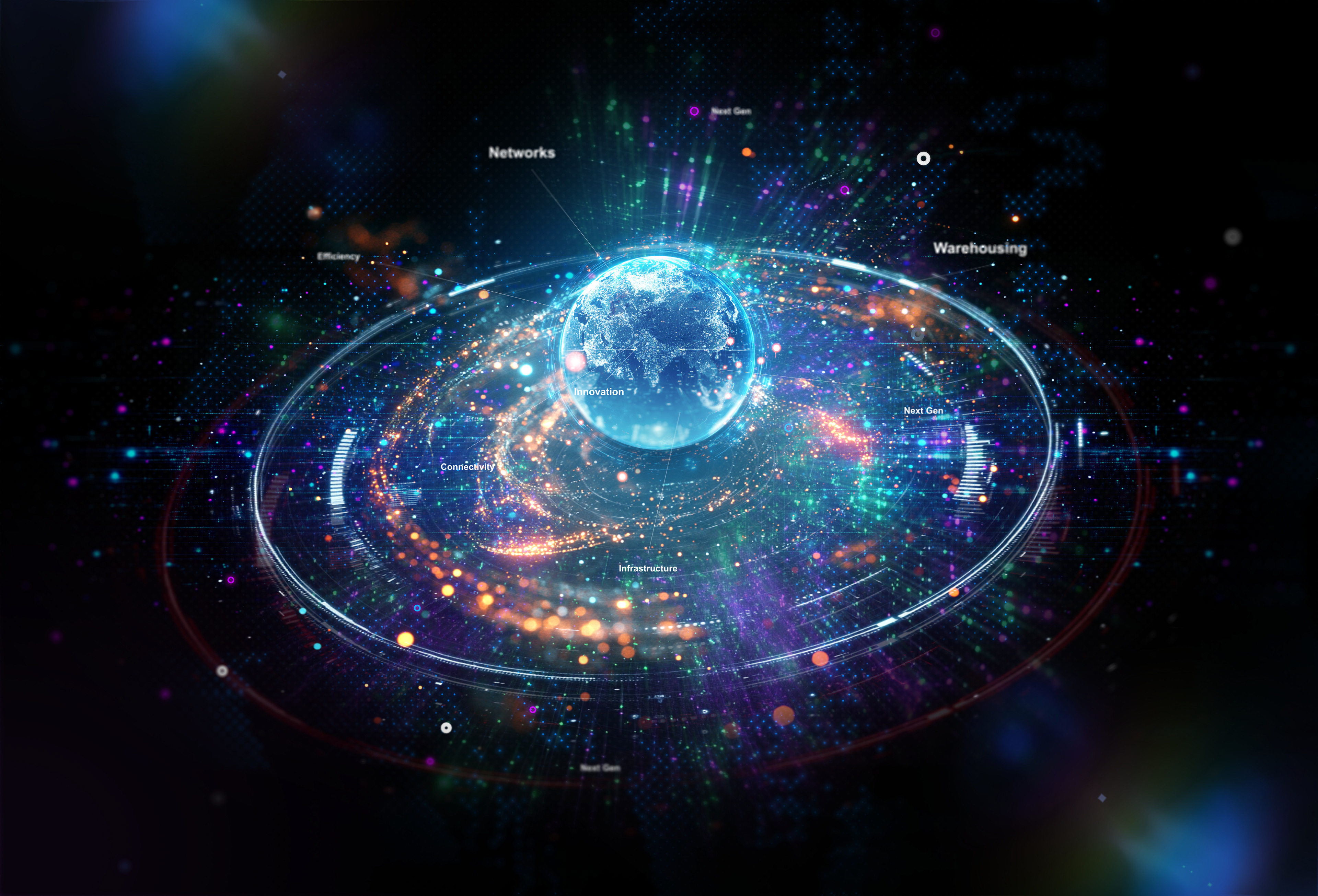 The visual concept showcases several states of the sculpture, each representing a unique theme within the overarching idea of logistics digitalization.