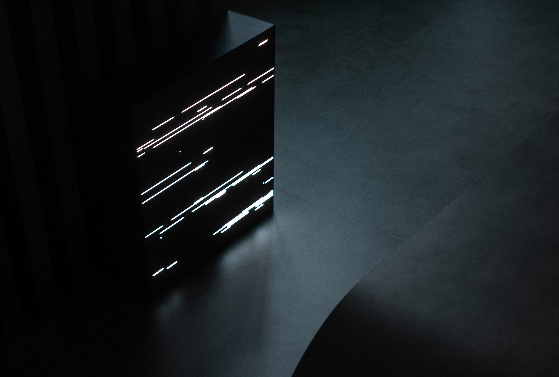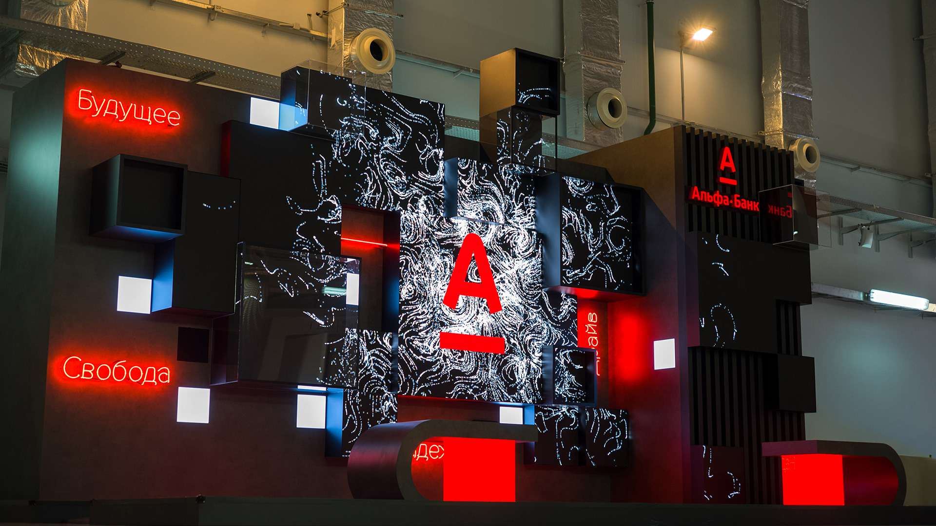 ‘Visions of Future’ is an interactive motion-activated manifest created for Alfa-Bank at Finnopolis 2018. Borrowed from the aesthetics of sci-fi, and as far from the conventional booth design as possible. Neon lights and a towering fragmented screen-wall without any hints of controls.